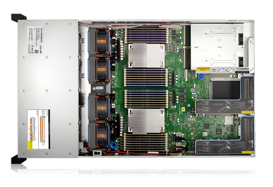 前置最大可支持12个3.5"/2.5"硬盘+后置4个3.5"或4个2.5"硬盘,为用户给予灵活的数据存储扩展能力;板载2个M.2接口,支持2块M.2 NVMe SSD ;可选配支持8个U.2 高性能NVMe 硬盘。
